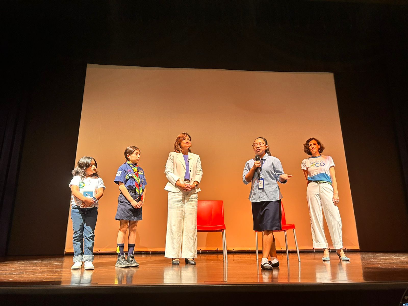 La vicepresidenta Karin Herrera conversó con niñas y niños de distintos centros educativos que participaron en el Concurso ECO aprendiendo por el Motagua organizado por la Alianza Motagua.